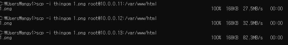 - 각 서버의 index.html에 사진파일 추가