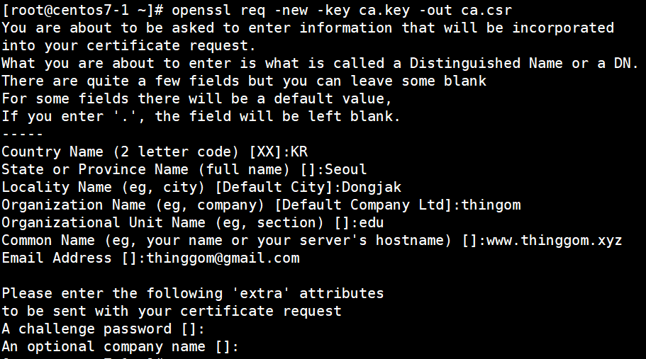 - 인증요청서 생성
