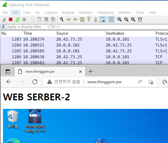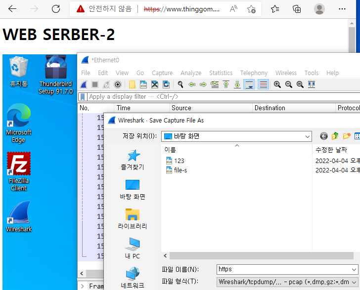- 와이어 샤크 실행 후 웹서비스 접속 후 캡처 저장