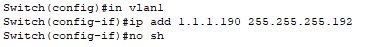 -> ip address 해당vlan게이트웨이주소 서브넷마스크