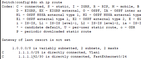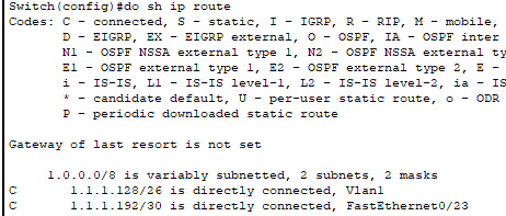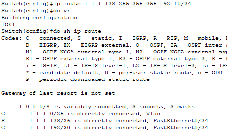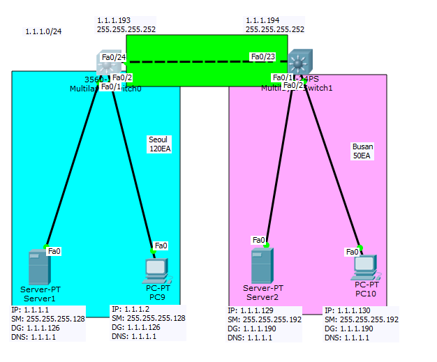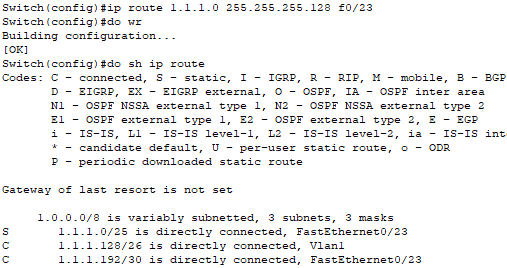 1.1.1.0/25 는 vlan1로 내보냄 1.1.1.128/26 vlan1