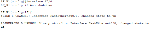 >> interface fastethernet0/0 -> no shutdown : f0/0에서는 no shtdown만 진행