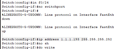 no switchport 를 이용해서 스위치 포트를 사용하지 않는다.