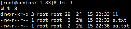 1.2.2. 옵션 -l : 파일 및 디렉토리의 속성 (메타데이터) 정보 출력
