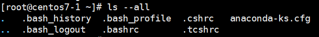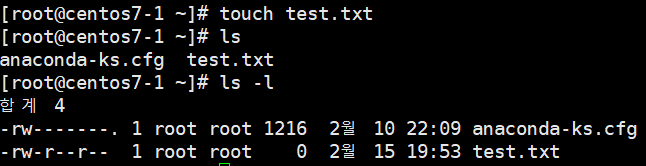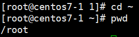 - root : 로그인 사용자 , centos7-1 : 컴퓨터이름(hostname), ~ : 현재디렉토리, #($) : 관리자 (일반사용자)