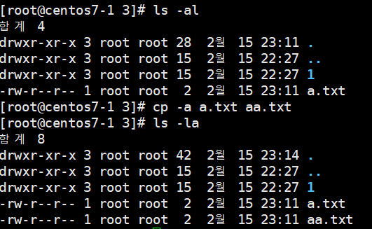 - 옵션 -a : 파일 속성 (메타데이터) 정보까지 복사