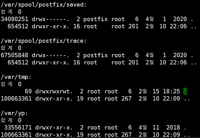 - var 디렉토리 안에 있는 모든 하위 디렉토리와 파일 목록이 보인다.