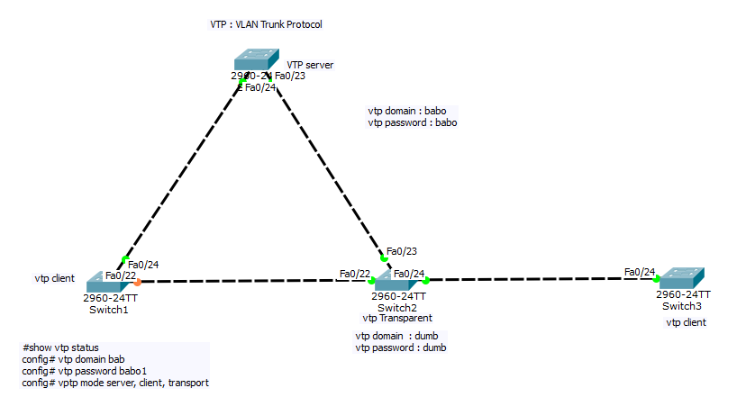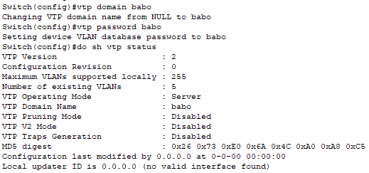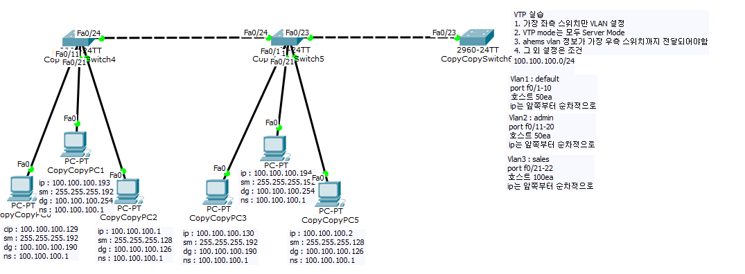 - 모든 스위치에서 vtp 서버 설정과 도메인 설정
