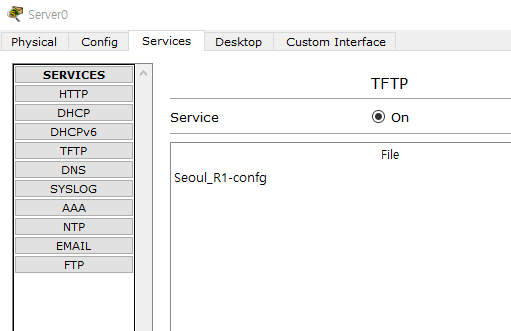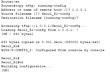 - tftp 서버에서 startup-config 파일을 복사하여 running config 로 사용