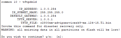 - 복구하기 위해서 재부팅 진행하며 cli창에서 컨트롤 키 + 브레이크 키 : rommom 모드 진입