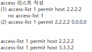 - 액세스 리스트에서 중간 내용은 지우지 못하고 끝 내용만 지울 수 있다.
