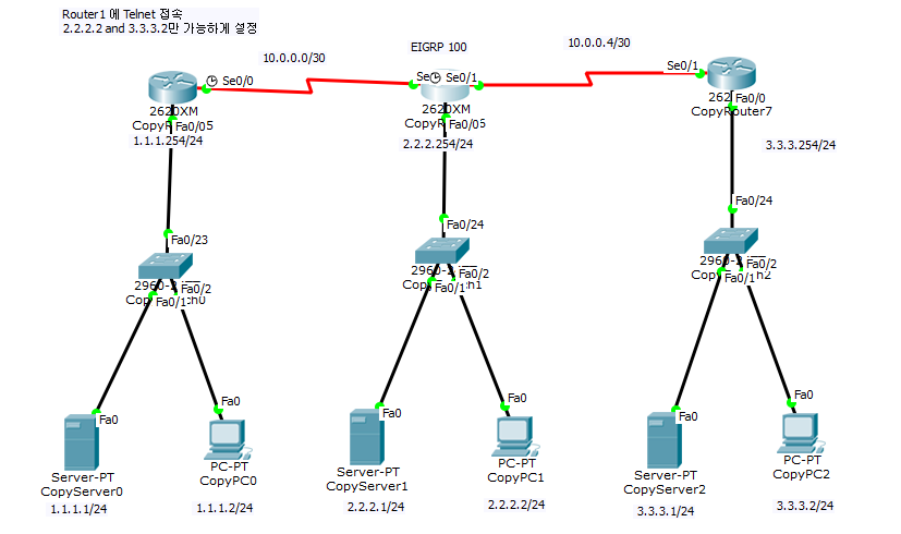 - 2.2.2.2의 ip를 막아버린다면 모든 서비스가 막힌다. EIGRP도 막힌다