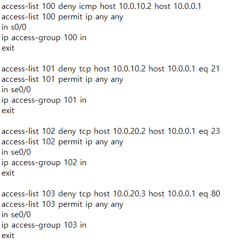 - 표준 IP ACL / 확장 IP ACL / Named IP ACL