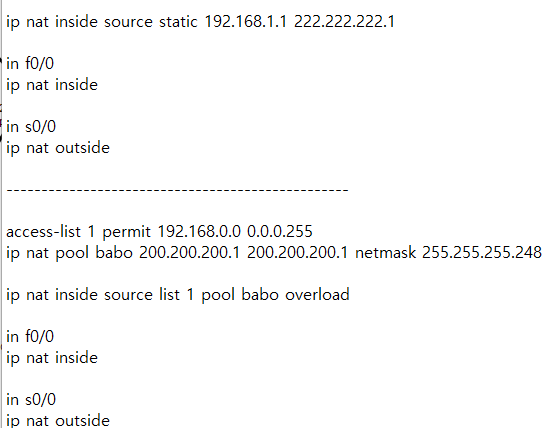 router(config) #ip nat inside source(출발지) list <list-number> pool <name>overload