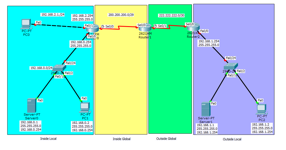 - sh ip nat trans로 확인하여 보면 outside ip인 222.222.222.2 가 내부 글로벌 200.200.200.1을 거쳐 192.168.0.1로 전 송됨을 확인.
