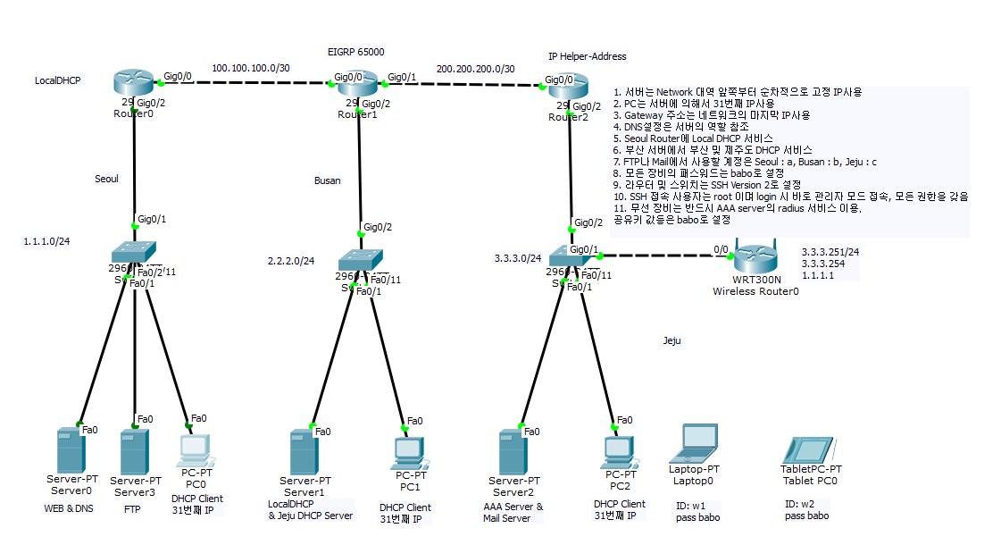 - 부산 서버에서 DHCP 기능을 사용하여 부산 서버와 제주 서버 ip 할당