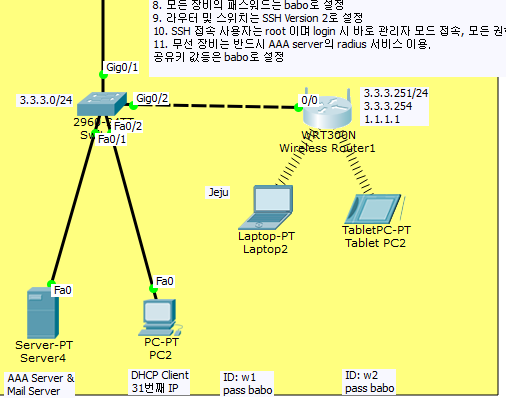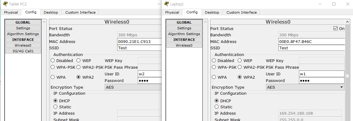 - 피씨와 테블릿에 ssid와 인증방식 적용