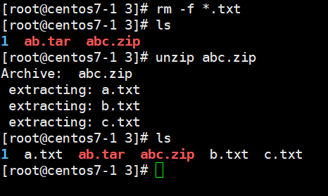 ex) zip abc.zip a.txt b.txt c.txt 명령어를 실행하면 abc.zip 파일이 생성.