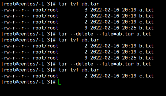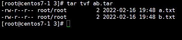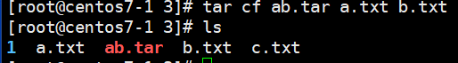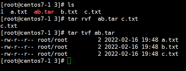 > rvf 옵션을 사용하여 ab.tar에 c.txt를 추가