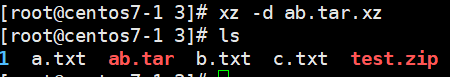 -J : xz 확장자 ex) # tar cvfJ abc.tar.xz a.txt b.txt c.txt