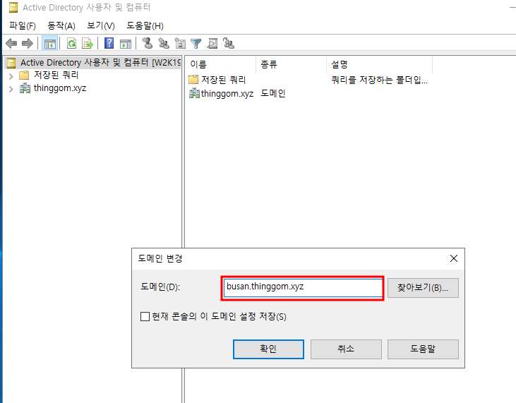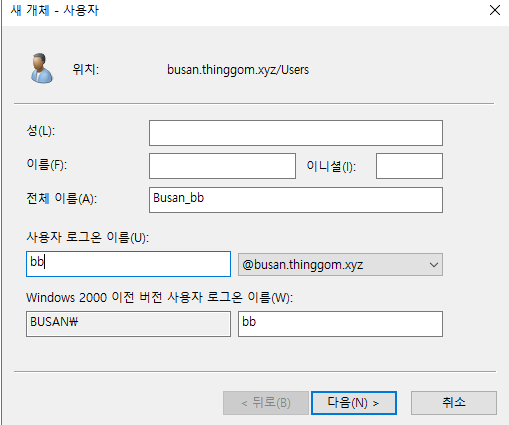 - AD서버에서 BUSAN도메인의 유저 생성 방법.