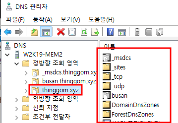 - mem2 자식도메인에 부모도메인 dns에 대한 보조영역 생성