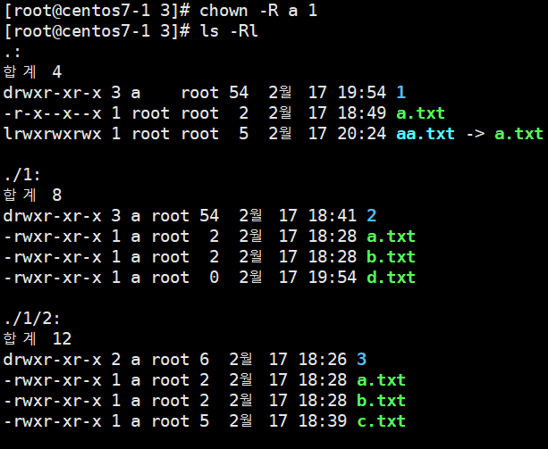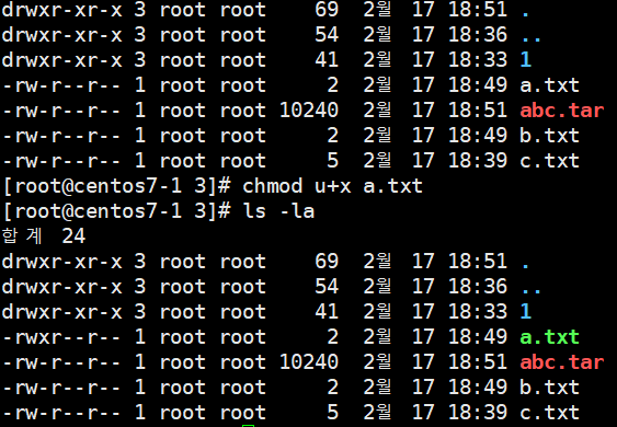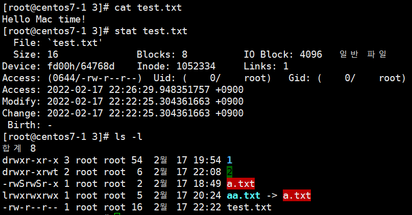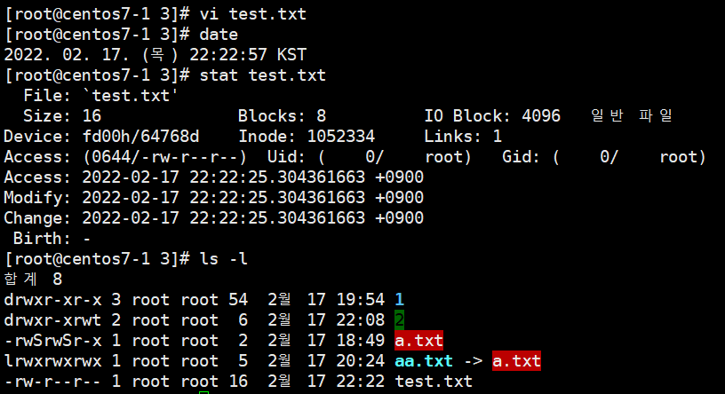 1.1. 예시 : -rw-r--r-- 1 root root 2 2월 17 18:49 a.txt