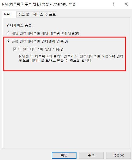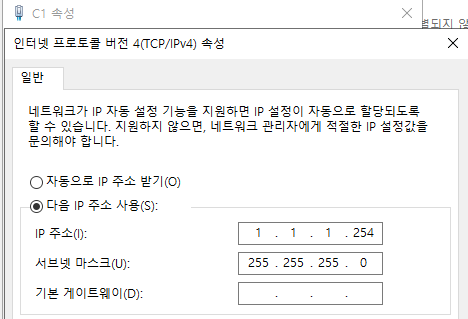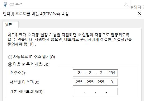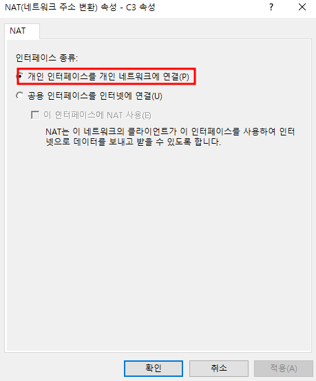 - 각 PC NAT 워크 변경