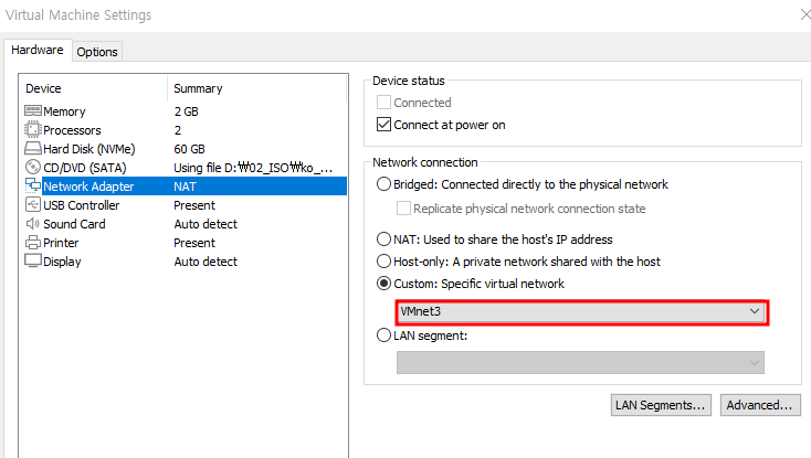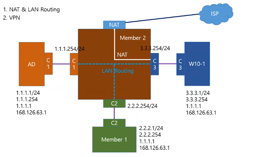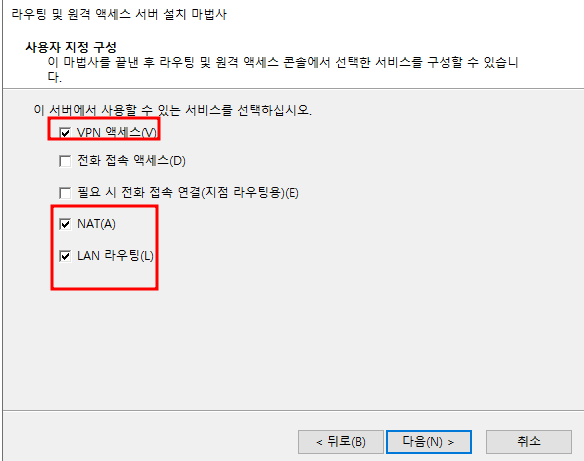 - 사용자 지정 -> vpn, nat, lan 라우팅 설치