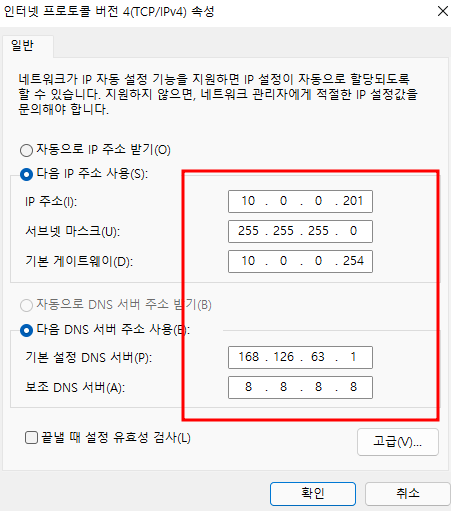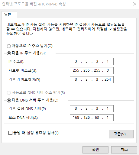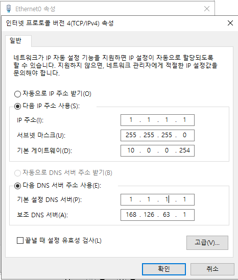 - W10 네트워크 설정 변경