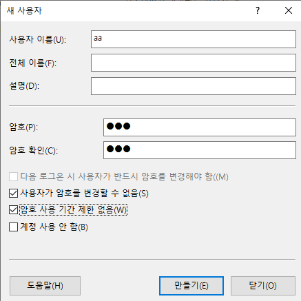 - mem2 와 mem1 모두 사용자 aa 생성 및 네트워크 엑세스 권한 부여
