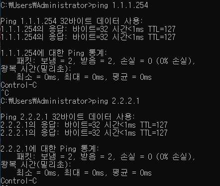 - W10에서 ping 테스트하면 랜라우팅으로 내부 통신 가능
