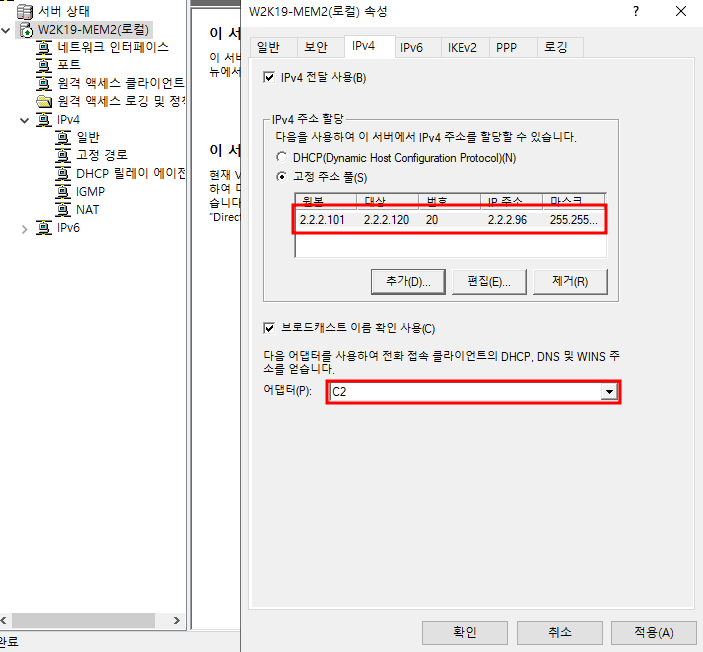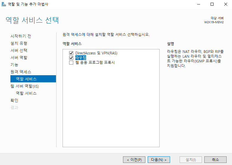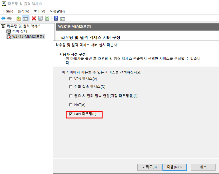 - 사용자 지정 -> LAN 라우팅 설치