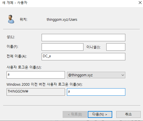 - AD서버 도메인 컨트롤러 생성 및 사용자 생성