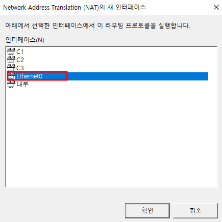 - NAT 새로운 인터페이스, 이더넷 0 공통인터페이스로 인터넷 연결
