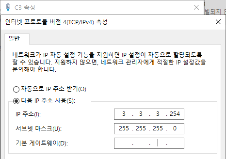 - 위 과정 진행 후 C3로 연결되는 w10 인터넷 접속 테스트