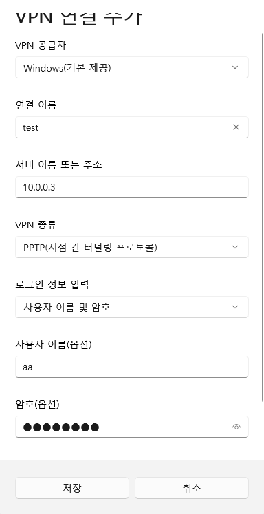 - W11을 통해 VPN 접속 테스트