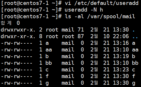 - CREATE_MAIL_SPOOL : 사용자 생성 시 메일 디렉토리 생성 여부, 기본적으로 yes 설정.