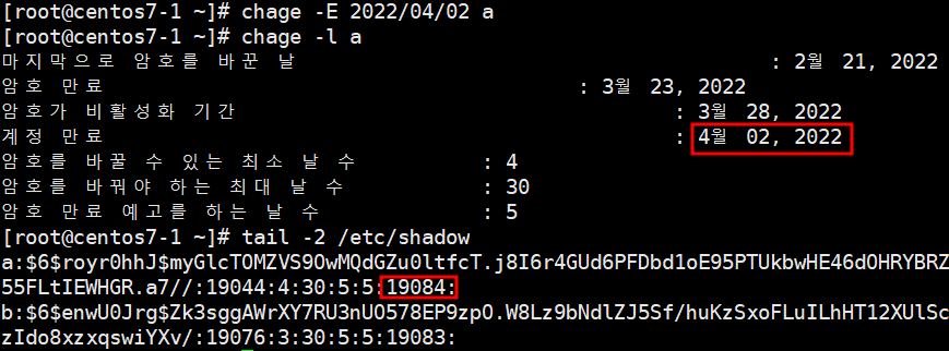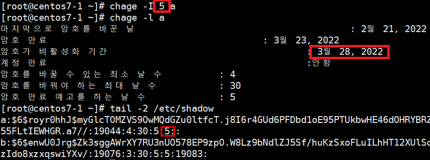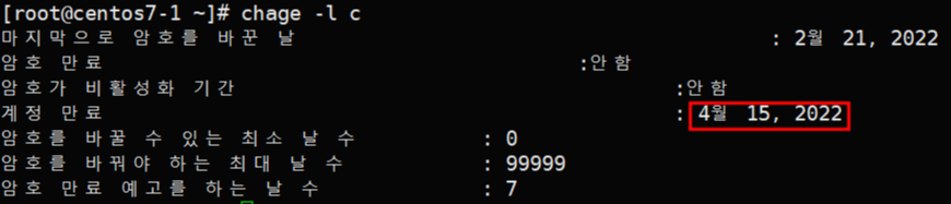 - chage -l 사용자 : 사용자의 패스워드 정보를 출력.