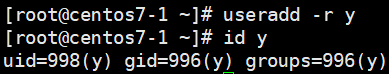 ->> -r 옵션을 통해 시스템 유저를 생성, 해당 사용자의 uid와 gid는 login.def 파일에서 설정된 범위 중 빈 공간을 찾아 할당.