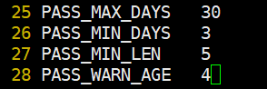 - 0 : 패스워드 최소 사용 기간 ( 해당 기간 동안 패스워드 변경 불가.)