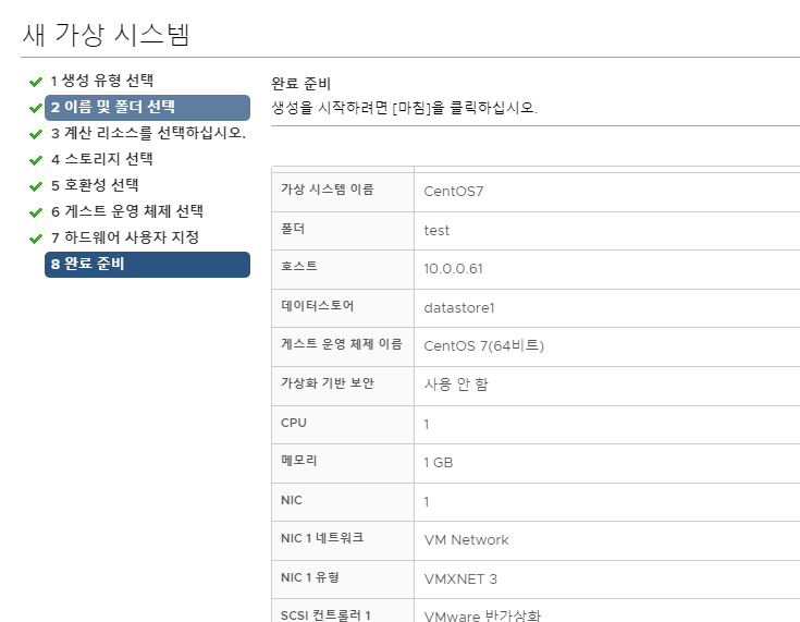 - 1번 호스트, 데이터 스토어 1번에 가상머신 추가
