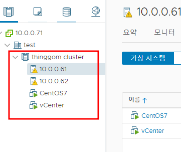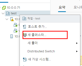 - vcenter에 기존에 생성해놓은 데이터센터 test에 새로 생성한 ESXi 호스트 추가